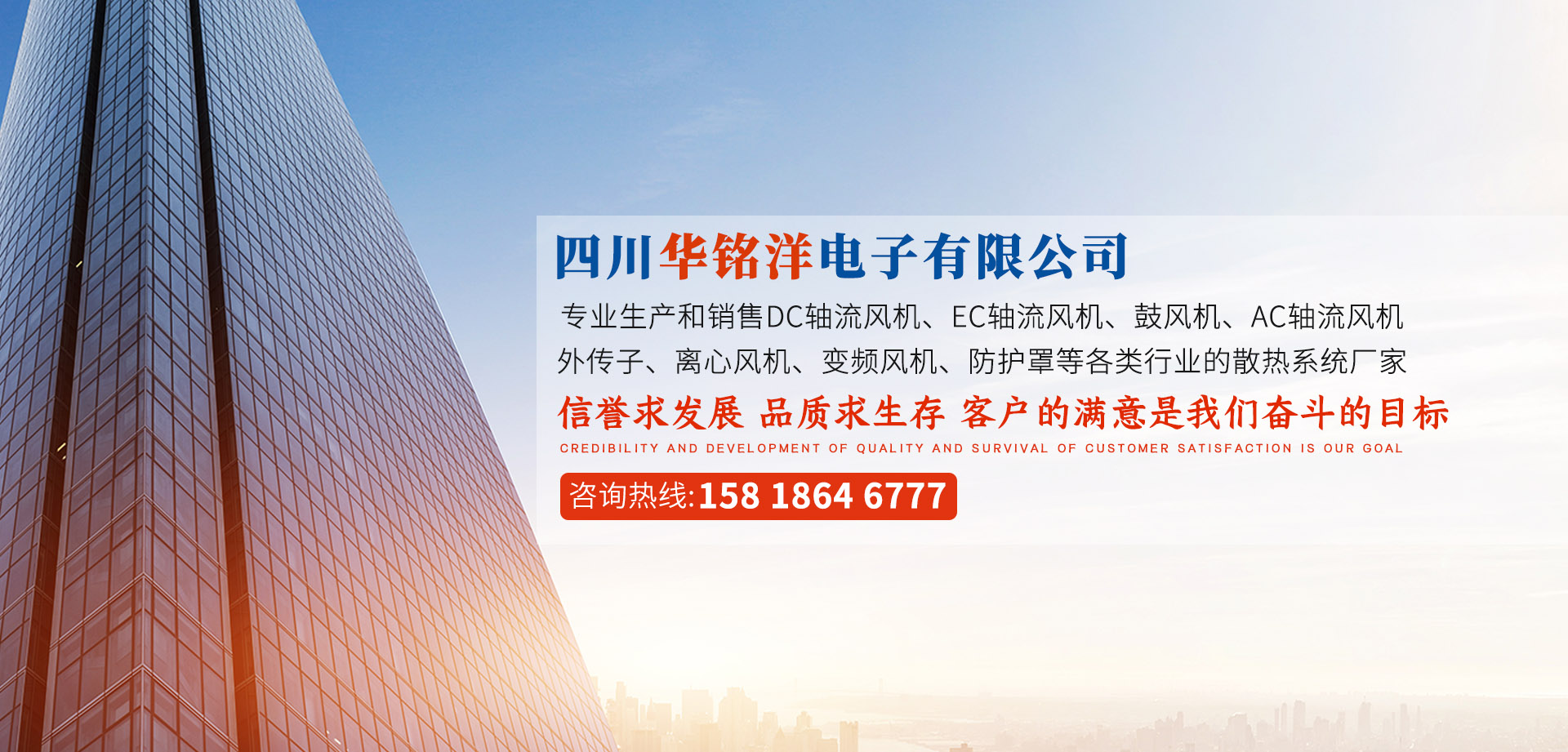 四川華銘洋電子有限公司是一家專業(yè)生產(chǎn)和銷售DC軸流風(fēng)機、EC軸流風(fēng)機、鼓風(fēng)機、AC軸流風(fēng)機、外傳子、離心風(fēng)機、變頻風(fēng)機、防護罩等各類行業(yè)的散熱系統(tǒng)廠家。 我公司司產(chǎn)品廣泛應(yīng)用于:IP領(lǐng)域、運動器材、焊接、電源系統(tǒng)、儀器儀表、機械、機柜、機箱、電源、電器、通信設(shè)備、計算機、自動控制、通風(fēng)散熱系統(tǒng)等各類行業(yè)的散熱系統(tǒng)廠家華銘洋公司全方位提供各行各業(yè)設(shè)備或系統(tǒng)散熱方案,解決設(shè)備或系統(tǒng)散熱問題。在產(chǎn)...